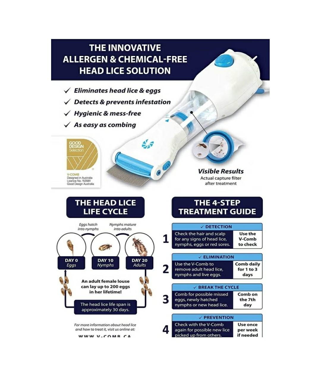 Chemical Free Head Lice Treatment Head Lice Comb Eggs Remover Hair V-Comb Vacuums